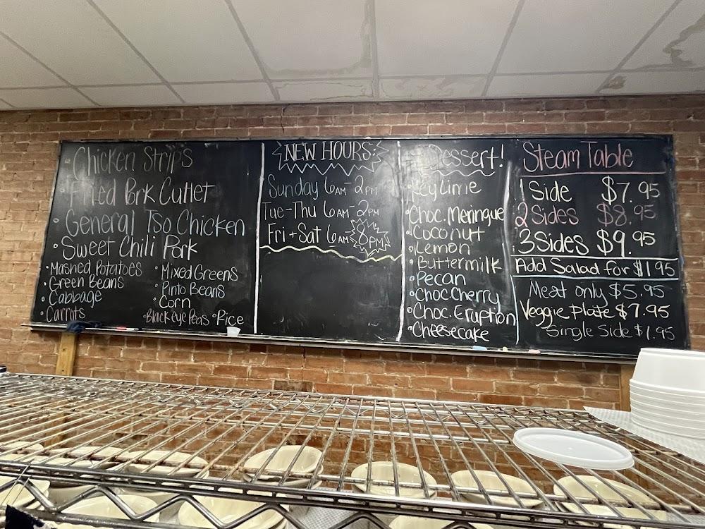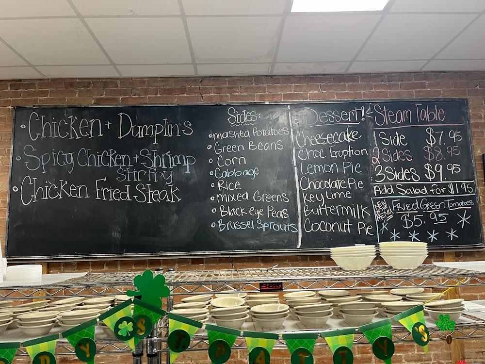 One entree plus three vegetable sides off the steam table with your choice of roll, cornbread or jalapeno cornbread served by 11am-2pm for lunch