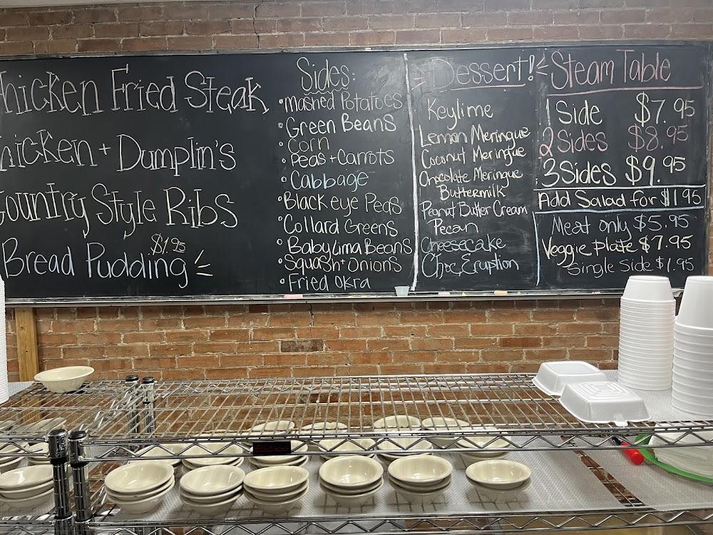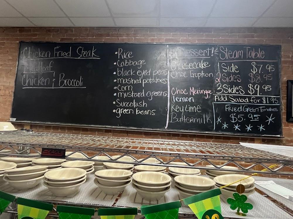 Lunch options include a diverse steam table, where diners can choose one or more entrees with sides like fried okra or southern-style vegetables. Catered meals and family-style service make it ideal for gatherings.